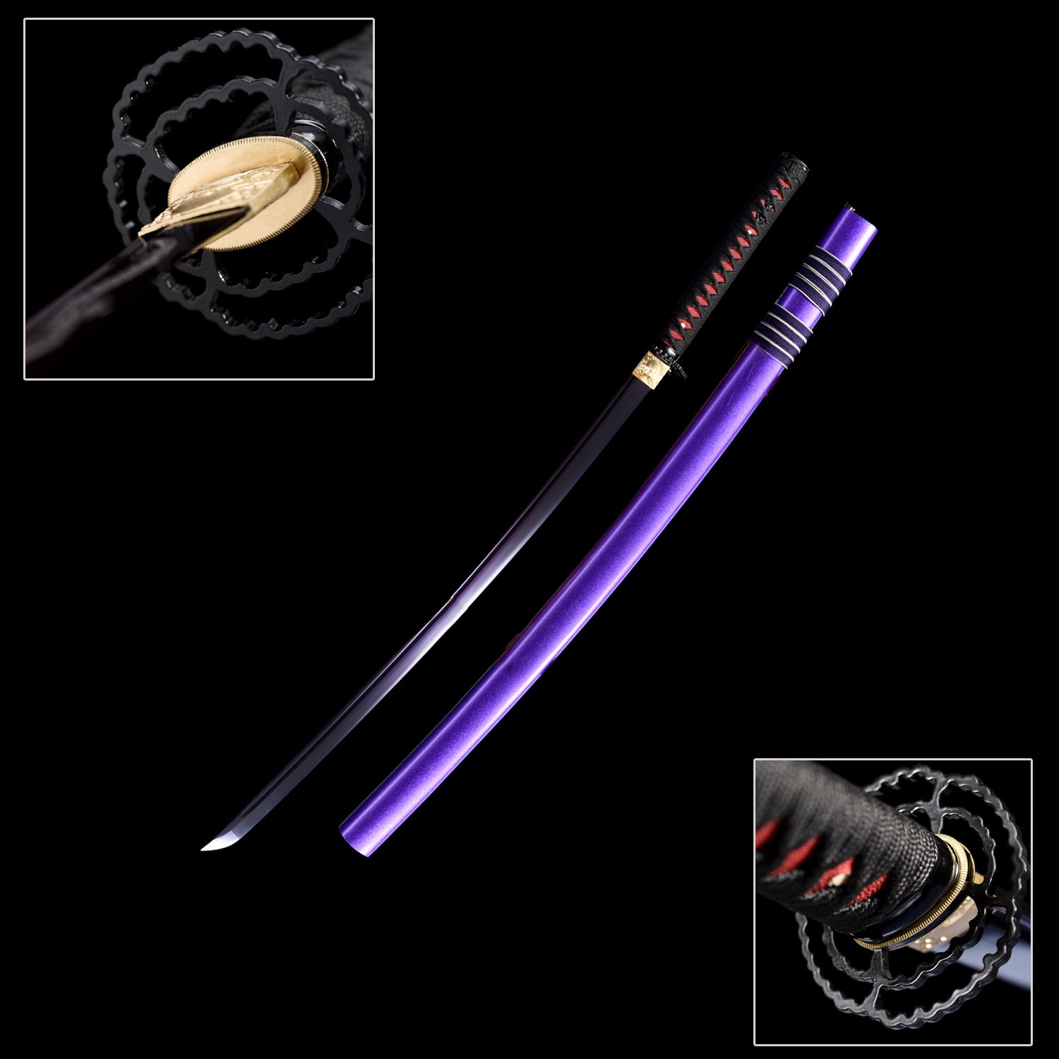 - Blade body roasted purple corrosion engraving: Creates a unique purple finish through high-temperature baking, paired with corrosion engraving patterns—blends practical anti-corrosion performance with artistic decoration, distinguishing it from ordinary samurai knives.