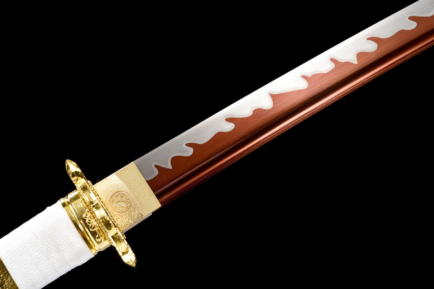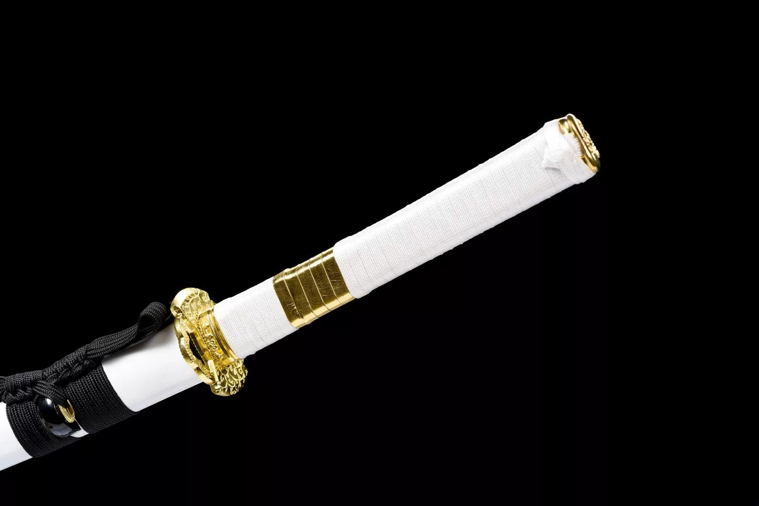 White Yanmo” Anime Model Sword (From One Piece) – 90° Bendable Manganese Steel, Handmade Double-Line Blade Edge