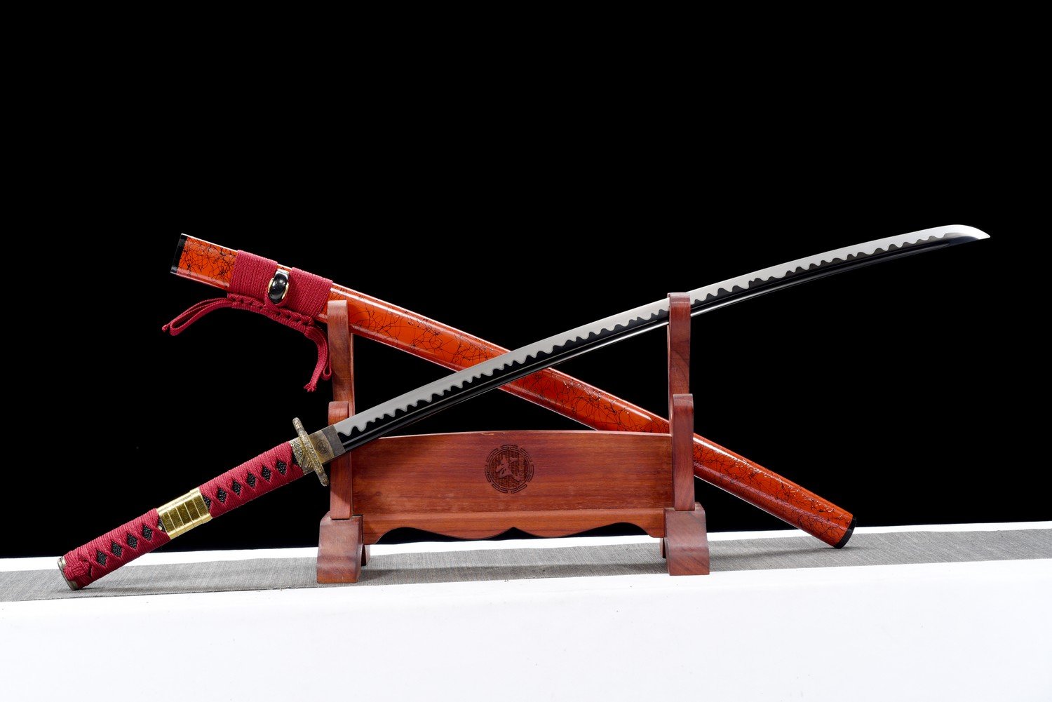 • Blade Craftsmanship: The blade features a sleek black finish for a striking, anime-accurate look. Its edge undergoes full hand-polishing using the “double line grinding” technique, reaching a hardness of up to 60°—a critical detail that enables it to cut through iron without dulling or damaging the blade edge.