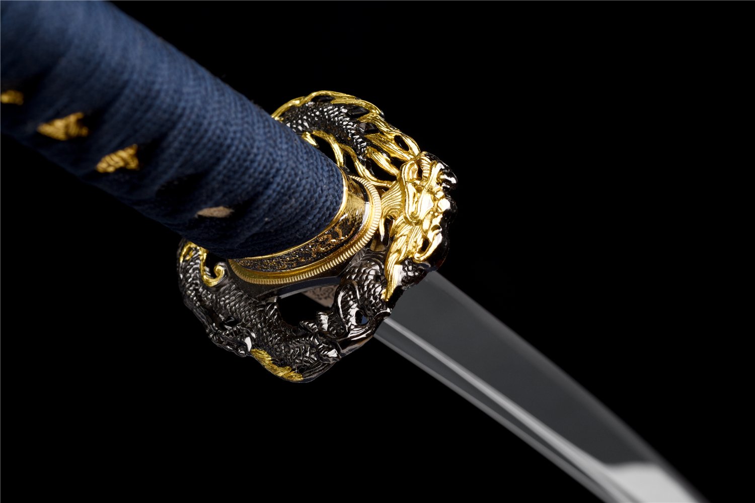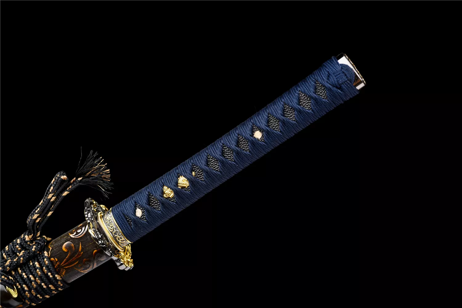 The sword is paired with an exquisitely carved solid wood lacquered sheath—on one hand, the lacquered surface effectively protects the blade from rust and scratches; on the other hand, the intricate carvings add a sense of luxury and artistry, making the sword a perfect combination of functionality and aesthetics.