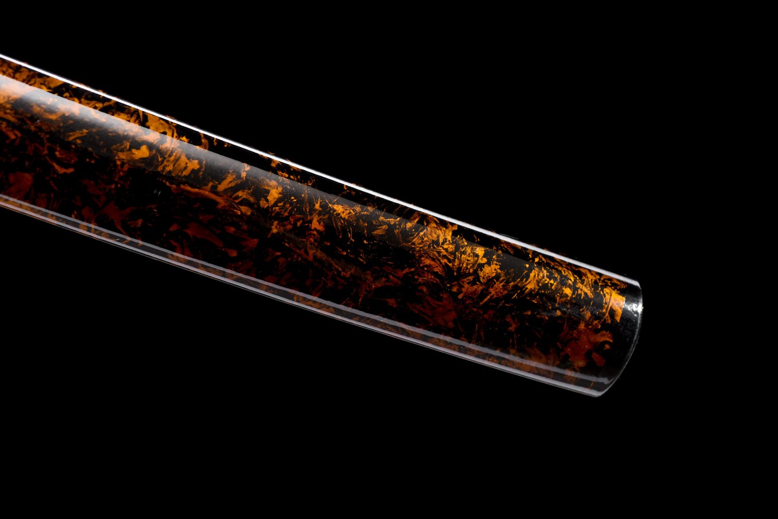 【Tiger Knife】Themed Mid-Carbon Steel Baked Gold Samurai Knife – Engraving Process, Solid Wood Lacquer Sheath with Tiger-Patterned Stickers, Exquisite Brocade Box Included