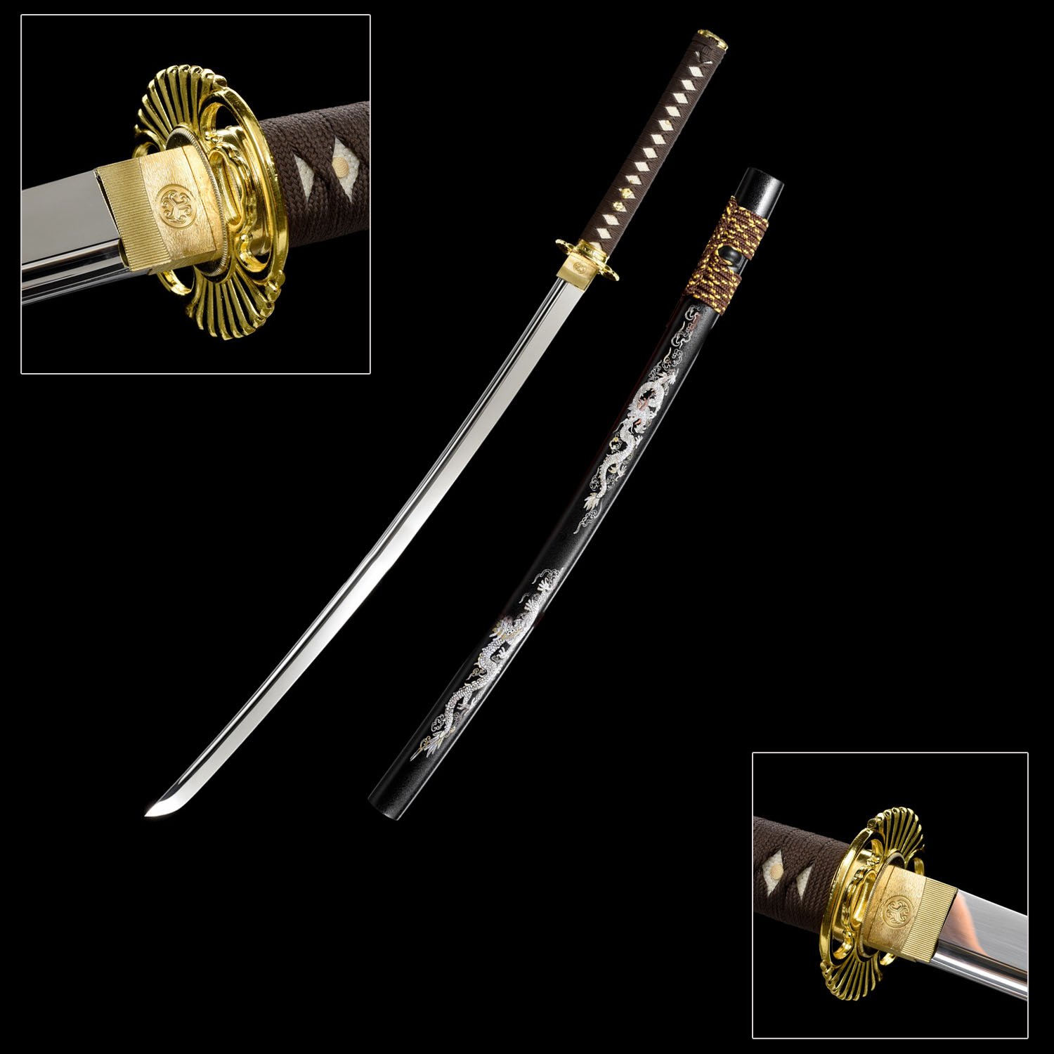- Scabbard Decoration: Solid wood lacquer scabbard imitating shell with a dragon inlay (imitation shell lacquer creates a glossy, iridescent texture; dragon inlay design echoes the “Double Dragon Mirror Polished Blade” name, enhancing cultural and thematic consistency).